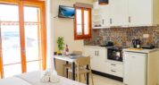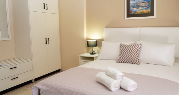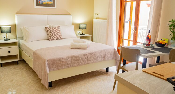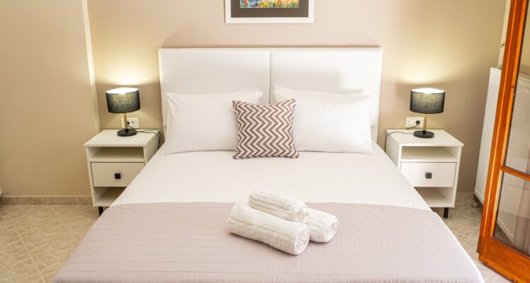 Enjoy a pleasant stay in our double apartments. Our Double apartments of 25 sq.m. are quite spacious and can accommodate up to 2 people. The modern and elegantly designed rooms have a large double bed and all the necessary amenities that allow you to have a comfortable stay and an experience full of relaxation.